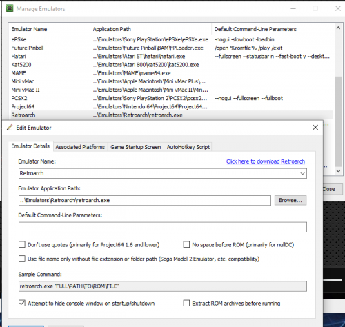 Go to Tools, Manage Emulators and then Add button. Add Retroarch and point to your existing install. LB runs whatever install you point it to. You don't need to click the link to install since you have it already. Just browse to Retroarch directory path and should have similar settings to below. In the associated platforms tab you tell LB what core you are using: