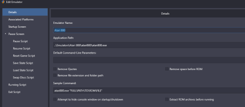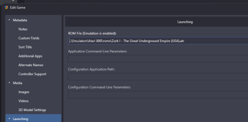 The internal LB version of ScummVM mentioned above is FAR easier to setup if just want to get things going quickly; however, LB uses the older 2.2 version vs the current version of 2.8. Some of the newer games ScummVM can run won't run under 2.2. You also won't be able to use RA core using this method. If don't care about that, then definitely go with LB way described above. However, you can use a standalone install of ScummVM that you can setup as separate emulator. Although more complicated initially to setup you have the ability to control which version of ScummVM you use as well as easier to use the eXoScummVM package, or use the Retroarch core. However, you cannot intermix the built in LB way of things and standalone, so have to decide how want to manage. Below is snap of setup for standalone version. Note the two check boxes for remove quotes and remove file extension. Your default command line should point to your INI file in your ScummVM directory (or wherever you told it to install). The "no-console" command tells it to not bring up the DOS window and the "-F" tells it to go full screen. -c "G:\Emulators\ScummVM\ScummVM\scummvm.ini" --no-console -f To run a game you have to place a pointer text file in EACH game directory of the ScummVM game main folder (this is what LB way of things automates). ScummVM command line looks at the file name and if it matches a game ID uses that to run the game. There is a plugin for LB to help with the pointer files, but if only have a few games can do it manually. The plugin can be confusing on the install instructions as they have not been updated for the more recent "DLL" version vs the older "EXE" version, so read the most recent comments first vs the main page. Make a backup of your INI files first before using the plugin. The pointer file (text file) uses the format of "gameID.ext". The extension can be anything as we tell LB to ignore it; however, make it consistent. I used "scummvm" (plugin uses "epicfail"). For example, the game "3 Skulls of the Toltecs" the pointer file will be "toltecs.scummvm". If you also want also be able to run the Retroarch version of ScummVM in addition to the standalone you have to type INSIDE the text file the game ID only. Setup the RA core as normal. See attached example. For whatever reason, Retroarch won't look at the file name like standalone ScummVM to decide how to launch game but instead looks inside the text file. Why they did the extra hoop is beyond me. toltecs.scummvm Game IDs can be found in the ScummVM application or in the ScummVM documentation (I found easier use APP). The LB plugin does the IDs automatically but not sure if it is updated with most recent changes as apparently the ScummVM team has changed some prior games IDs on newer versions like 2.8. You then import the text file as the "ROM" within Launchbox and then use either RA or standalone to run the game. Disadvantage: you have to override the game name to link to LB Games DB as LB won't (always) know what "toltecs" is when imports. As can see, can be time consuming initially so again using the LB internal version mentioned above is the quickest/easier way if don't care about older version and/or have games that version won't run. Additionally, I would stick with "cherry picking" games and version you want vs trying to install every ScummVM game available.