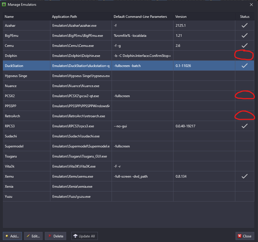 This morning 4/17/2026 there were multiple updates to plugins upon launching Launchbox. After updating all of the plugins and downloading new ones the following Emulators no longer are updating for me: Dolphin, PCSX2, Retroarch I attempted to edit these emulators, the download option is no longer there. I updated the plugins, repaired the plugins, manual deleted the plugins and reinstalled. No Change. I Deleted PCSX2 entry and tried to re-add. The emulator is set to manual updates now. I didn't want to remove Retroarch as there is a lot of setup to the cores list. Can anyone think of anything else to try? This feels like 3 broken plugins to me. I am on 13.27 beta-1 Windows 11