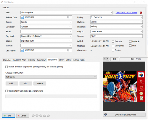 I've tried to create a custom platform just for sports games. Unfortunately, whatever rom I move or import to the platform will not run. I have made sure that "Use an emulator to play this game" is checked. If I move the rom to its traditional platform it runs fine and dandy. (e.g. if I move NBA Hangtime from the custom platform "Sports" to the traditional platform "Nintendo 64" it will work.) What am I missing? Edit: I meant to mention that I have tried searching for the solution but was not able to find it. Sorry if this has been answered before.