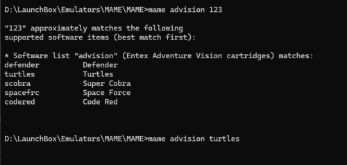 I use MAME for this system. mame.exe advision <game_name> <game_name> can be: defender, turtles, scobra,spacefrc Remember to have needed bios in its place.