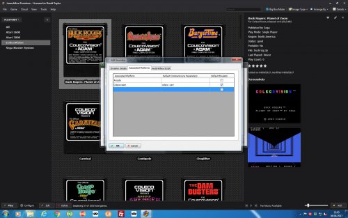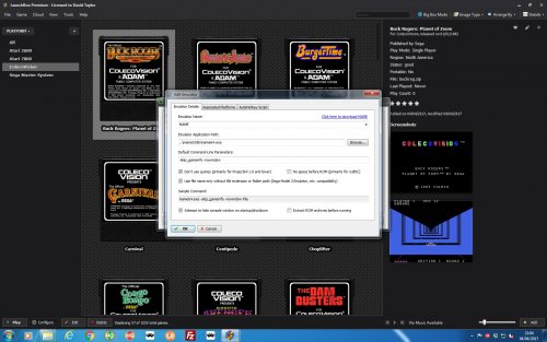 Hi guys , sorry to be a real pain but I still cannot get Colecovisiom to work here is what I have done so far .... 1. Downloaded MAME 0183 2. Downloaded a complete MAME 0183 Split romset (54Gb) 3. Placed the romset into the MAME rom folder 4. Started LB and added a new platform , pointed it too the Colecovision folder in the rom set 5. Set MAME as the emulator Now when I look in the Colecovision rom folder its showing 220 roms but all that EB finds and sets up is just 57 of them , when I try to play any of those 57 I briefly get the mame screen and it says " Initializing " and then dumps back to the main EB screen I have added a few screen shots of my settings etc , could someone please tell me what I am doing wrong ?