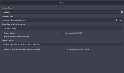 I actually found the commands for it! Using "-scd" pulls the game correctly. I did get rid of "-auto" because you can set it as auto in the emulator. Console options: -sms, -gg, -gen, -md, -32x, -scd, -mcd Now I just need to figure out the Kega Fusion settings to when I go to Fullscreen it doesn't stay tiny and centered and no sound. Also I was told there are ways to make KF run more smoothly on Windows 10 & 11. Anyone know what the settings might be?