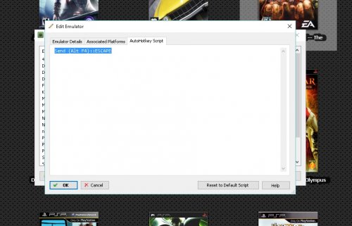 in the autohotkey script section of PPSSPP, ive been trying to create a script that will alternate Alt+F4 (Which Is Escape) to the actual escape button. ive come up with these but no luck still.. can anyone help? Ive Tried: Escape::Send {Alt F4} ESC::Send {Alt F4} Send {Alt F4}::ESCAPE Send {Alt F4}::ESC The reason im using this is because im using an actual arcade cabinet with no keyboard. i have made an esc button go to one of my microswitches. if this script works, hopefully i can map it to all my emulators which require alt+F4 to escape the emulator.