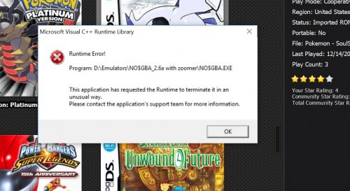 thanks for replying jay. sorry it took a sec to reply back. there isnt a hotkey section to change it. the reason why i wanted esc to be the key is because all my other emulators escape by esc easily rt now. if i hit it using no$gba though, i get the above error. i tried this autohotkey and i still get the runtime error. im just trying to escape out of the emulator safely without showing a runtime error everytime i escape out of a ds game. Even if i have to force close it, its fine.