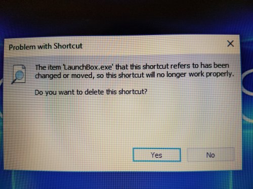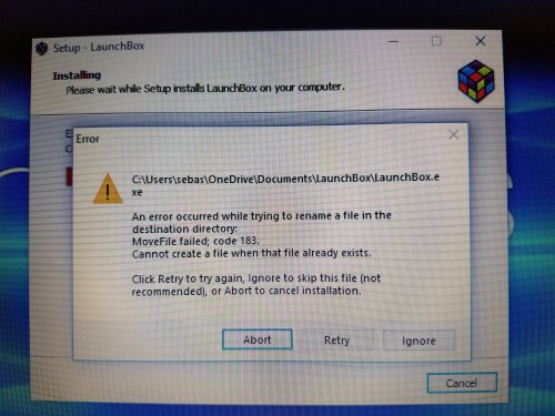 Hey everyone, thank you for taking the time to read this post. I need help with an issue I'm currently facing. I'll try to be as detailed as possible. So just recently I upgraded my Launchbox from a yearly license to a forever license in order to support the development of this great front-end and to get the latest updates. Once I got the download link for the license, I went ahead and placed it in my Launchbox directory. From there I initialized Launchbox and was prompted to update to the new official Launchbox Version - 8.3 (My current version being 8.1). I went ahead and clicked "yes" and the update process began. Unfortunately, during the update, I recieved this message stating that there was an error while trying to rename a file in the destination directory. I've provided an attachment of this message down below. Anyway, I clicked retry to see if that would solve the issue but unfortunately it didn't. Upon trying several more times, I decided to just click "abort" since clicking on "ignore" appeared in parenthesis as (not recommended). From there a brief message appeared stating "removing installation files" and the installation process was then terminated and the window closed. From there I decided to perhaps try again so I clicked on my Launchbox desktop shortcut but got a window message stating that "Launchbox.exe" has been moved or changed as shown in the second attachment. I went ahead to my Launchbox directory to check, and it appears that Launchbox.exe has been deleted as it is now missing. Now I'm unable to access Launchbox and it appears that BigBox is inaccessible either. I double click it, but it's not starting up. I would truly appreciate it if you guys could help me out. Thank you all once again. Here are all the attachments: