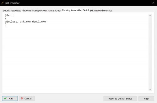 3. I myself would try to find out why LaunchBox or BigBox looses focus. I just saw a comment from somebody who solved it like this: I am no bat file hero so I don't know how you can gracefully exit a program with bat files. But I know how you can start a game with a bat file and close it with AutoHotkey. If you start a game using a bat file, LaunchBox sees the bat file as the game. The bat file starts the game and then terminates and as far as LaunchBox is concerned, the game was terminated so exit scripts don't work anymore. But if you use bat files, you have them imported as games? Like windows games, you don't use an emulator for them? How have you set up the bat files to run from LaunchBox? *Edit* Because I myself don't experience loss of focus with Demul, how have you set up Demul in LaunchBox? Because if you could get Demul to run without problems from LaunchBox, that would be by far the easiest solution. If you want, could you provide screenshots like mine? Also I have configured Demul to Launch fullscreen.