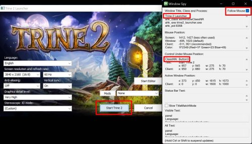 17. In short: Download AutoHotkey.zip from the AutoHotKey site. It contains a script (WindowSpy.ahk) with which you can look up window titles and button names / numbers. Drop that script on AutoHotkey.exe. The WindowSpy tool will open. Start your game and look up the window title of your game's launcher, then the button number of the "Run" button. Write a script (just a text file) that waits for the game's launcher window to open, then sends a key press to the "Run" button. (Or if the "Run" button is already highlighted when you open your game's launcher, just sends a "Space" or "Enter" key press.) Save that script as a AutoHotKey script. (With an .ahk file extension). Add that script as an additional app to your game in LaunchBox. Below I have an example for the game Trine 2: WinWait, Trine 2 Launcher WinActivate Sleep, 1000 ControlSend, Button3, {Space}, Trine 2 Launcher ExitApp - The script waits for the Trine 2 launcher window to open. - Activates the Trine 2 launcher window. (gives it focus) - Waits 1 second. - Sends a key press of the Space key to button 3 of the Trine 2 launcher window. (The '"Start Trine 2" button). - Terminates the script. If your "Run" button is already highlighted when the game's launcher is opened, you could just send a Space or Enter key press without specifying a specific button. For example: WinWait, Trine 2 Launcher WinActivate Sleep, 1000 Send {Enter} ExitApp If you want to test your script, drop your script (with an .ahk file extension) on AutoHotkey.exe. Then start your game. More information on AutoHotKey's ControlSend and Send command. *Edit* I added a screenshot about how to use AutoHotKey's Window Spy tool to look up window titles and button numbers.