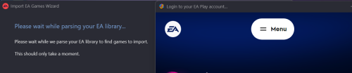 I am struggling to get the EA importer to work. I get the log in window and it allows me to enter my log in. The window does not seem to detect the login (screenshot below). I have 16 games that appear in the EA app but zero are found by launchbox. I have ttried logging out and back in. i have tried to turn auto import on and off. I've rescanned the store front. Did a brand new LB install and tried to import EA, and nothing. Not sure what else to try. None of the games are attached to "my collection" for LB. This is the only storefront that will not add games.