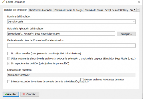 Hi guys, I need help with these 2 platforms. Use demul to emulate naomi and cia ... and I'm perfect except with sammy. When launching the game from launchbox / bigbox does not launch the game, it launches the game selection screen of the emulator itself. The same problem happens to me with the sega model 3 emulator (supermodel). I have tried to use both the .exe and the graphical option UI. And I get the same result. I leave some images of my settings so you can help me in what is wrong. Thanks guys.