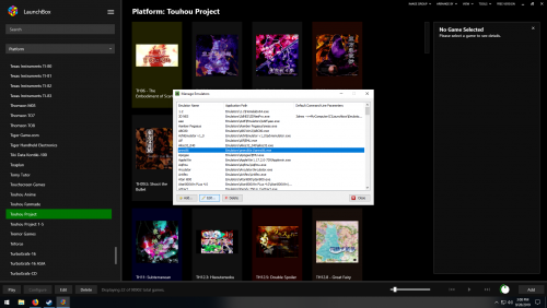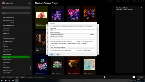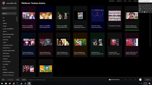 "Touhou? What the heck is that? " Then I played.... Thank you ZUN for this Masterpiece of 27 titles ??? Don't let the cutesy girls fool you, this is Bullet hell Schmuppery at it's finest ! Art vids xml included Big box intro vids: Touhou Project.mp4 Touhou_Project_1-5.mp4 Not one but two platforms! Touhou 1-5 Touhou Project Info-tainment Lunatics Woah! Wiki Check out these other Touhou inspired sets also Project Blank Seihou Project More to come! Banner Clear Logo Device Fanart (included in the set) For 1-5 I use anex86 (included) you will have to go to Tools/Manage Emulators add anex86 point it to the executable in Launchbox/Emulators/anex86/anex86.exe The other games (Touhou Project) have their own executables you might need to edit each game and point it to the proper exe sorry if this is the case in hdd1 click the ... button and browse to your hdi file located in Launchbox/Games/Touhou Project 1-5 (if anyone knows how to automate this message me and I'll update the post) Touhou_Project.mp4