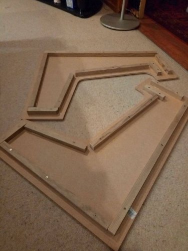 Another progress update... Got the control panel cut out and most of the cabinet screwed together. added some holes to the side for pinball (in hindsight they might be a little low but it should still be all good). Just need to cut out the hole for the monitor and build a bracket for it, sand it up, give it a coat of paint and then throw in the joysticks and buttons and I should be done.