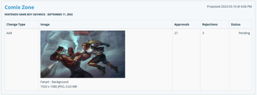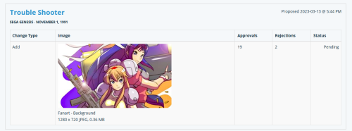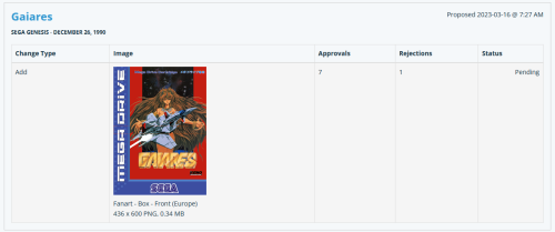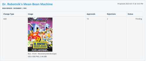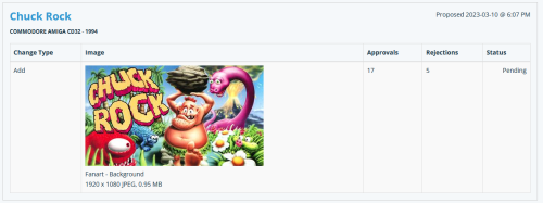 @Jason Carr The same for me. I have several images with very high approval numbers on pending status. The oldest picture has been in the queue for more than eight days and has 27 approvals (3 rejections)! Just to show a few of them: PS: In case it helps find the problem, my Games Database username is Giovanni_84 -