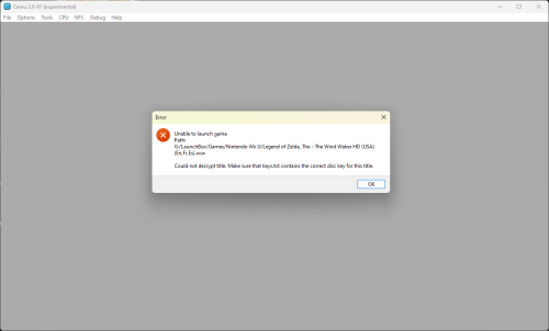 I am attempting to add Wii U games to LaunchBox 13.15. I have two "versions" of a game to install, but it seems LaunchBox doesn't like one format, and Cemu doesn't like the other. One format is a .rar file that, when unpacked, contains a folder with a bunch of numbered .app and .h3 files as well as title.cert, title.tik, and title.tmd. Cemu 2.0-91 can see this unpacked folder and recognize the game within and play it just fine. However, LaunchBox cannot see this folder and its files at all, so the game cannot be added to LaunchBox. The other format is a .7z file that, when unpacked, only contains a single .wup file. LaunchBox sees this file perfectly fine! However, Whenever I try to open the file in Cemu, I get the error "Unable to launch game…Could not decrypt title. Make sure that keys.txt contains the correct disc key for this title." What can I do to have both LaunchBox and Cemu be able to see and launch my Wii U games"
