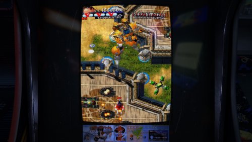 For marquees on top (on one screen) during gameplay check out this amazing project and site: https://www.verticalarcade.com/