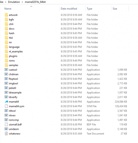 i plan on only getting roms for games I want to play, not complete sets... I am getting them from retroroms the currentroms/ folder. As mentioned above I did get MAME to work on my 7 year old home computer running Windows 10 and am using Black Tiger blktiger.zip as my test rom. It loaded and worked fine on there.