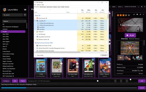 Okay, even with Official release, I deleted the ListCache.xml before running, this time I only selected clear logos for the Arcade platform, All downloads fine, then searches emumovies, downloaded files, through "z" as normal, then it still goes to Searching Emu for 3DO interactive media and just hangs there. It appears it downloaded clear logos from Emu best I can tell, but I'm not really sure. Out of the 3361 games it downloaded 2379 files, 1900+ were from LB database, the remaining came from Emu. Again, cancel doesn't stop the process, but I was able to close LB normally without having to kill it with task manager. Here are screenshots of LB and one of the processes running in task manager after it goes to the 3DO stuff: