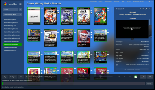 So far, I can say that downloads have improved for me and so far had no errors with emumovies, but I have encountered one strange thing with downloading manuals. Only 18194 total games in collection, I used the Games Missing Data option, it finds 18183 missing manuals, the screenshot shows it's downloading 43858 manuals????