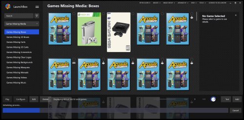 v12.7.1 - When I use the "Games Missing Media", allow it to check the metadata, then trying to update what it finds, say box fronts or 3d boxes for the 400+ games, it just hangs on "Initializing process" for me. Cancel isn't working right either. I can close LB and try again, does same thing. Anyone else?