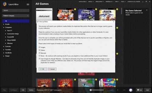 LOL, not angry at all. Since this is something to do with beta, should it not be posted here? New Feature: The Clean Up Media process has a new option to scan images for rough matches. This new option can make the clean up media process take an extremely long time, but will save you loads of disk space in your collection, especially if you download media both from the LaunchBox Games Database and from EmuMovies. The process identifies duplicate images in your collection even if they are different sizes, faded, etc. The largest duplicate image is kept, and the rest are listed for deletion. But surely not angry at all, hope it doesn't appear that way. Just reporting. Screenshots are from 2nd attempt