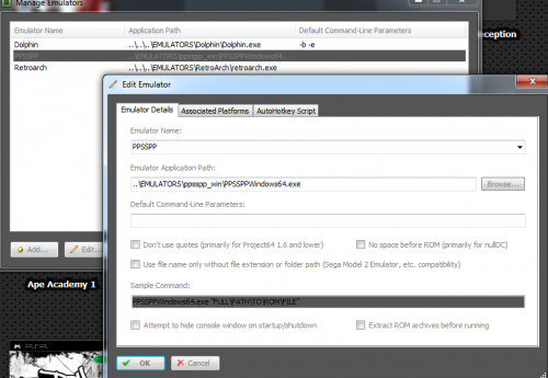 I first tried the retroarch psp emulator, i didnt like it so i setup PPSSPP instead. when i right click a game it shows the default launch Retroarch. It shows "launch with" PPSSPP so that works only.