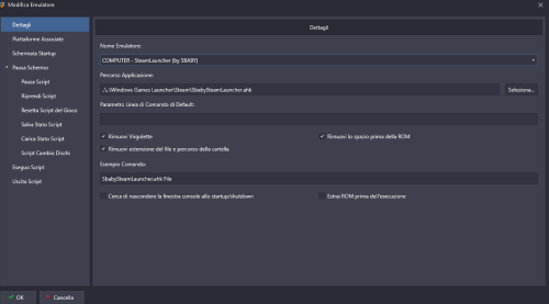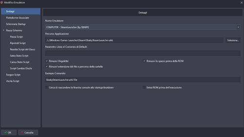 i tweaked the wii script a bit, and de ps3 script, that @JoeViking245 and @Kiinkyfoxx had created very well here https://forums.launchbox-app.com/topic/39811-auto-hotkey-scripts/page/34 and I have created a new Steam launcher autohotkey emulator (SbabySteamLauncher.ahk) ๐ use these tick settings With the TcNo-Acc-Switcher software you have to enter your steam password only the first time, then it keeps them in memory and starts automatically without ever asking for them for each account. You can use this script even if you only have one account, just change it a little changes https://github.com/TcNobo/TcNo-Acc-Switcher This is the script of the emulator ahk file, you will have to enter the 3 data at the beginning, the folder where you installed TcNo-Acc-Switcher and the long numbers of the ids of your steam accounts instead of zeros You can change the buttons too, my buttons 1 and 2 correspond to joy3 and joy4, and for the keyboard they are V and B ;*************************Enter TcNo-Acc-Switcher Parameters************************* TcNoPath = M:\Games\Utility\TcNo-Acc-Switcher TcNoAccount1ID = 00000000000000000 TcNoAccount2ID = 00000000000000000 ;****************************************************************************************************** #NoEnv ; Recommended for performance and compatibility with future AutoHotkey releases. ; #Warn ; Enable warnings to assist with detecting common errors. SendMode Input ; Recommended for new scripts due to its superior speed and reliability. SetWorkingDir %A_ScriptDir% ; Ensures a consistent starting directory. StringSplit, ScriptNameArray, A_ScriptName,. #SingleInstance force Image = Themes\Image_start.png Image2 = Themes\Image_account1.png Image3 = Themes\Image_account2.png Image4 = Themes\Image_exit.png Emulator = "%TcNoPath%\TcNo-Acc-Switcher.exe" Options = Zw%A_ScreenWidth% Zh%A_ScreenHeight% ;Options = Zw1920 Zh1080 SplashImage,1:%Image%,b %Options%,,,MySplash WinMove, MySplash,,0,0, %A_ScreenWidth%, %A_ScreenHeight% WinMinimize, ahk_exe LaunchBox.exe, WinMinimize, ahk_exe LaunchBox.exe, WinMinimize, ahk_exe BigBox.exe, WinMinimize, ahk_exe BigBox.exe, MouseMove, 1920, 1080 #IfWinExist MySplash { 1Joy3:: 2Joy3:: $1:: $v:: { MouseMove, 1920, 1080 SplashImage,2:%Image2%,b %Options%,,,Splash2 WinMove, Splash2,,0,0, %A_ScreenWidth%, %A_ScreenHeight% WinWait, Splash2 SplashImage,1:off SetTimer, Image2, on, RunWait, %Emulator% +s:%TcNoAccount1ID% +open steam://rungameid/%1% Process, Wait, gameoverlayui.exe Process, WaitClose, gameoverlayui.exe Run, "C:\Program Files (x86)\Steam\steam.exe" -shutdown sleep 50 Gosub, Exit } 1Joy4:: 2Joy4:: $2:: $b:: { MouseMove, 1920, 1080 SplashImage,3:%Image3%,b %Options%,,,Splash3 WinMove, Splash3,,0,0, %A_ScreenWidth%, %A_ScreenHeight% WinWait, Splash3 SplashImage, 1:off SetTimer, Image3, on, RunWait, %Emulator% +s:%TcNoAccount2ID% +open steam://rungameid/%1% Process, Wait, gameoverlayui.exe Process, WaitClose, gameoverlayui.exe Run, "C:\Program Files (x86)\Steam\steam.exe" -shutdown sleep 50 Gosub, Exit } 1Joy2:: 2Joy2:: $Esc:: { SplashImage, 1:off Gosub, Exit } } Exit: SplashImage,4:%Image4%,b %Options%,,,Splash4 WinMove, Splash4,,0,0, %A_ScreenWidth%, %A_ScreenHeight% WinWait, Splash4 Process, Wait, steam.exe Process, WaitClose, steam.exe WinActivate, ahk_exe LaunchBox.exe, WinMaximize, ahk_exe LaunchBox.exe, WinActivate, ahk_exe BigBox.exe, WinMaximize, ahk_exe BigBox.exe, ExitApp Image2: Sleep, 9000 SplashImage, 2:off SetTimer, Image2, off, return Image3: Sleep, 9000 SplashImage, 3:off SetTimer, Image3, off, return Image4: Sleep, 5000 SplashImage, 4:off SetTimer, Image4, off, return ;************************************************************************ Inside the startup folder you need to create a Themes folder containing 4 images with the names that you find inside the code, these work as account choice and coverage of the loading and closing of Steam. I quickly created them with https://www.canva.com/ . you can create them as you like best I'm italian ๐ Roms files are simply txt empty files with the name of the steam game id number and without the extension Then create a ROMS folder, or whatever you like, and create many text files inside with the names of the games id. For example for Tekken 7 you will have 389730 (not 389730.txt) empty for each game steam starts at the start of the game and closes at the end by returning to launchbox. What do you think?