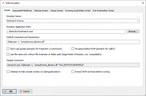 I'm having some trouble getting Kronos to properly function with Launchbox. I originally had it working well enough for one troublesome STV arcade game (Cotton 2, since the music is fixed in Kronos as opposed to MAME) but I realized that when I tried to add more MAME-incompatible games it just loads whatever game was set up to load last in the Kronos UI instead of the game it should be loading. For example, Cotton 2 only worked because I had loaded it previously with the UI but if I change it to be anything else it will always load that game instead of the one I am wanting. I can't find anything conclusive after doing a bunch of searching and my current config is shown here: Is this just a command-line issue or is Kronos not able to play STV games via command line? If it is not possible, does anybody have any good alternatives they recommend for STV games on Launchbox? If it is possible, is there a way to set the bios region on a per-game basis? (US bios for games that support it, JP for ones that don't)