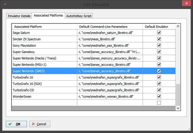 4. Hello, i have the same problem, i am worse than i thought could you explain me how you find the default line parameters for each emulator? When i associate a plateform it is always empty Thanks for all Olivier