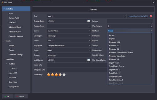 I want "Lightgun Games" to be a top level similar to the video below. One change though, in the video it looks like all the lightgun games are MAME. I want All Lightgun games (M2, M3, NES, etc). I envision a top level "Lightgun Games" with a submenu for Arcade, NES, etc - and in each of those platforms, only lightgun games would be listed. Yes I am aware of playlists, no that's not what I want. This is an arcade cabinet and I want it to be intuitive even if you've never used it. I tried creating a top level category "Lightguns" but I think there is a bug in Launchbox because the category is getting listed under "Handhelds" despite me not nesting it there. The other problem I am having is that when I try to move a lightgun game to my custom "Arcade-Lightgun" Platform, it is not listed as an option. Am I doing something wrong?