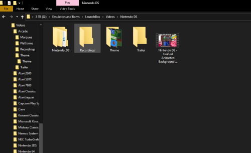 My BigBox build switched to screenshots instead of videosFakedPotato replied to FakedPotato's topic in Troubleshooting I have found the problem but not the solution. In Launchbox folder under videos- ill click the system (in this case sega saturn) and ill click the sub folder Sega_Saturn - MP4 HI QUAL and all my video snaps are there. I have 2 video snaps outside of that folder that i duplicated and placed under videos-Sega saturn (that way they show up under the platform wheel) but the problem is, BB isnt recognizing the sub folder where all the snaps are, just the two videos I placed outside the sub folders (those 2 videos show up when i scroll to them in the games screen) so im not sure what to do. If i copy paste all the video snaps and place them where the two videos at (that show up on the platform section) they all work but then i get a million videos populating on the saturn selection screen and i dont want that, just the two that i put there. So basically in short, bigbox isnt reading the sub folders where my video snaps are, just the main folder where i normally put the video snaps i want the platform wheels to see.