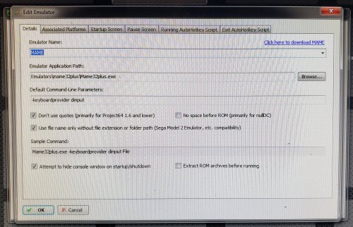 When running a game from the front end, the game idles and gives me the "Now Loading..." until it times out, never launching anything and leaving me right back in the front end. It's as if the Mame itself is not launching correctly. The paths are correct, and its using the default parameters set by launchbox when I imported Mame.