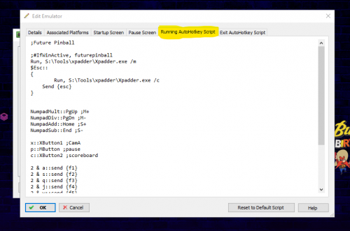 Yes, I'm referring to the scripts in the "edit emulator" box, the running and the exit ones