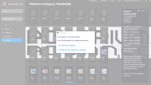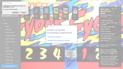 Not sure what's going on but in BigBox I ran Stella to play Adventure II and then when I backed out using Esc I got a Black Screen to where I had to Windows Key and close the Startup Screen, and after that I couldn't seem to get anything Launched after that on anything. I just switched back to LaunchBox to Edit more of my collection and hoping the next time I go back in to BigBox I can Launch everything normally again. Just wanted you to be aware of that @Jason Carr just in case you have a way of fixing it from being an issue again. Might be something rare, but just wanted to let it be known so maybe nobody else will have that problem too