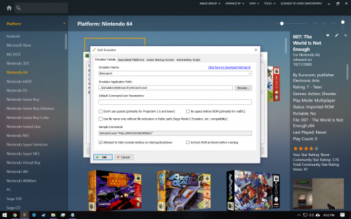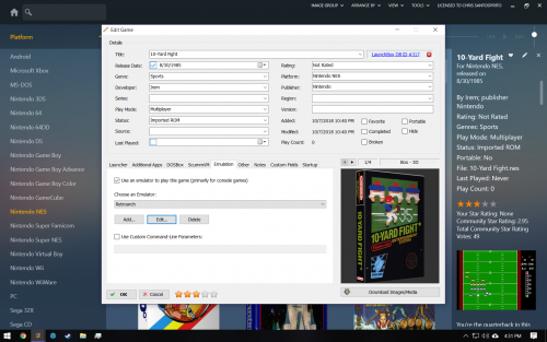 For some reason, no matter which platform I'm trying to play, retroarch crashed if I load the game thru LB. It looks like it's starting with the FPS in the tope left corner, but it's just black and eventually it crashes and it asked me either to close the program or wait for it to respond. It never responds. If I open retroarch thru the exe and load a rom, it works perfectly fine. I cannot figure out why it doesn't work thru LB. I was hoping someone might have solution for this. I am running 1.7.5 on retroarch and the most current version of LB which I believe is 9.3. I'll also add that I have the correct emulators pointing to the platforms. Not sure if that info is pertinent or not. Thanks in advance.