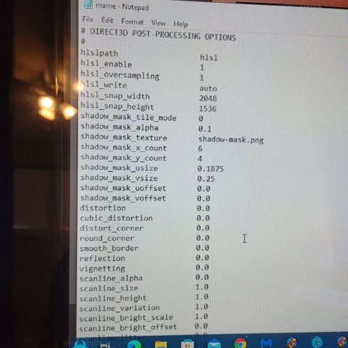 Can anyone tell me how to enable hlsl shaders in mame 241? I cant figure it out. I looked for a master mame ini file but it seems it is broken into multiple files inside ini\presets there seem to be like 7 or so ini files like raster, vector, vector-mono, lcd, lcd-matrix GBA, gameboy. The only 2 that seem to mention hlsl are the 2 vector ones. I want to basically launch mame hit this button "~" and play with the different parameters until I get it how I want then change my configs in the ini file. I dont even know which one to to change or what to change initially to get the different setting to pop up in game. It looks really blocky right now and I want it to look smoother like an old school nice crt...I'm open to other shaders if there is a better option fyi. Thanks in advance.