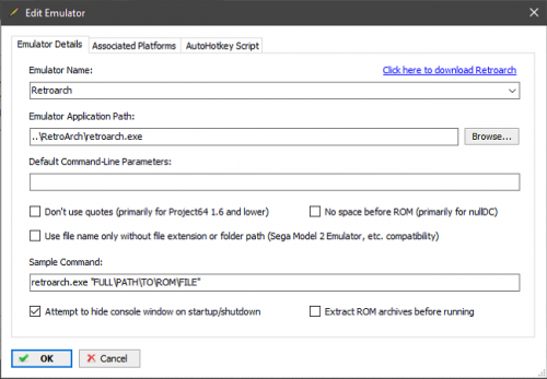 I've checked andchecked my LB settings for Retroarch... here are my configs: I know the games work fine in Retroarch but I can't get LB to start it...