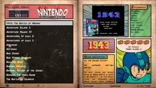 1. I've been looking through and testing out a good handful of themes and I can't find quite what I want and I figured I'd list specifically what I'm looking for and see if anyone knows of any good matches (or at least something as close as possible) that they enjoy. Ideally after selecting a platform I want to see: A vertical, text-only list of games (not marquee art) Box art on display Marquee art on display separately (I know this is odd but I prefer it this way) Video snap support Description/Info So far the closest thing I've found is Retrorama which is SO close to being exactly what I'm looking for (in addition to having a beautiful aesthetic) but I was a bit heartbroken when I found that apparently it was abandoned before getting video snap support. I'll leave a picture for reference in case anyone is unfamiliar with the Retrorama theme. Anybody have a favorite that's as close to this format as possible? Thanks in advance!