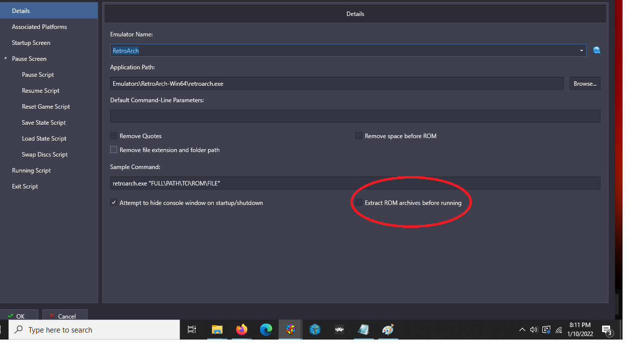 sharkytowers Posted December 13, 2021 Posted December 13, 2021 Pretty much what the title says. I have a directory of 30 arcade games. Each one is zipped. I can load each one no problem via the FinalBurn NEO core in RetroArch, but as soon as I try and launch one through Launchbox I get an error. I'm thinking it's a syntax thing? I'd love to get it to work as I don't want to load 1000's of Arcade games, but would like to play a few. 1 Quote