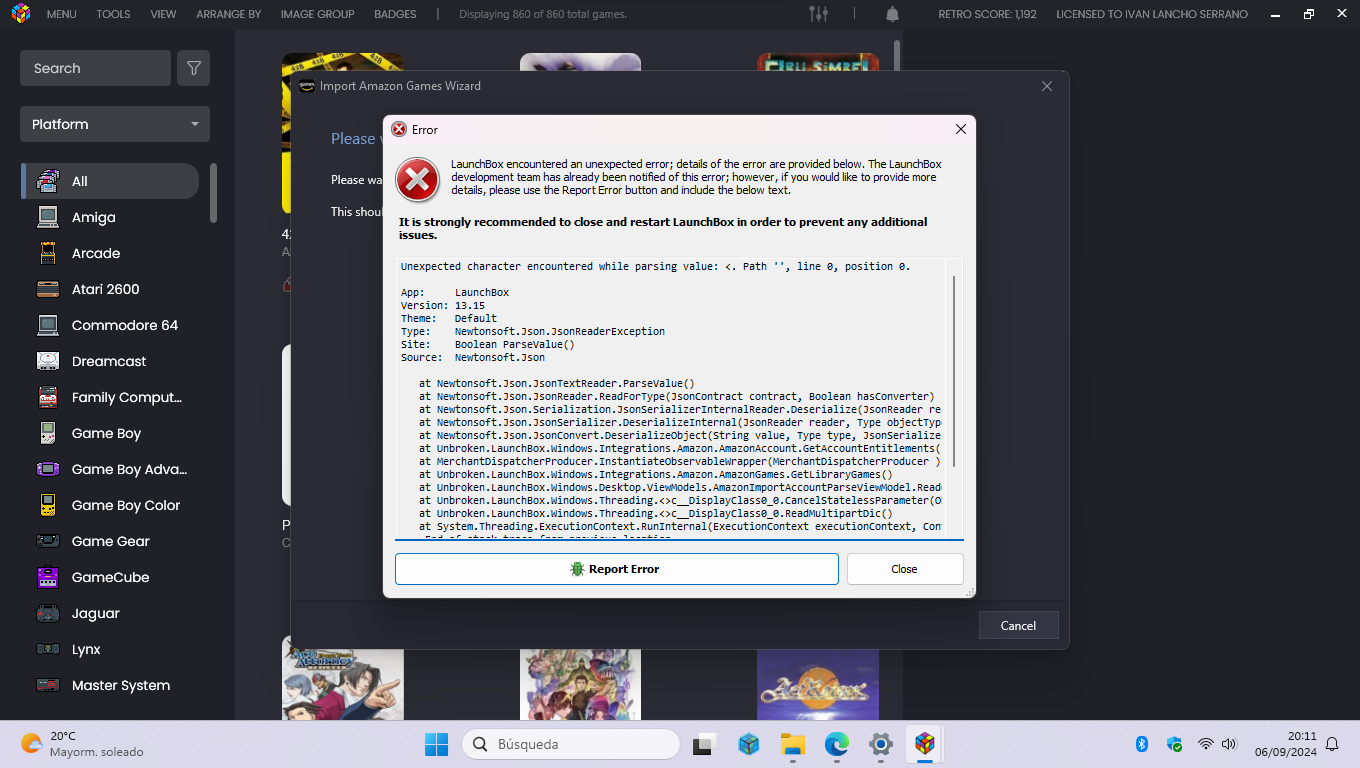 We're receiving several reports from users when trying to import games from Amazon Games store, which is causing LaunchBox to crash.