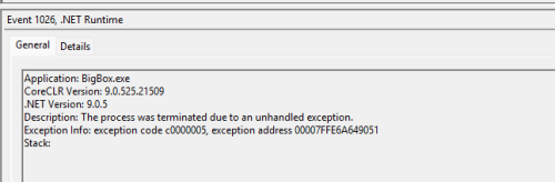 drtechnolust Posted September 19 Posted September 19 (edited) Arcade Neon Deluxe Theme 1st boot Crash - Background Music is on bigbox logs2025-09-19 12:04:27 PM FIRST CHANCE EXCEPTION: ImageSourceConverter cannot convert from System.String. at System.ComponentModel.TypeConverter.GetConvertFromException(Object value) 2025-09-19 12:04:27 PM FIRST CHANCE EXCEPTION: ImageSourceConverter cannot convert from System.String. at System.ComponentModel.TypeConverter.GetConvertFromException(Object value) at System.ComponentModel.TypeConverter.ConvertFrom(ITypeDescriptorContext context, CultureInfo culture, Object value) at System.Windows.Media.ImageSourceConverter.ConvertFrom(ITypeDescriptorContext context, CultureInfo culture, Object value) 2025-09-19 12:04:27 PM FIRST CHANCE EXCEPTION: ImageSourceConverter cannot convert from System.String. at MS.Internal.Data.DefaultValueConverter.ConvertHelper(Object o, Type destinationType, DependencyObject targetElement, CultureInfo culture, Boolean isForward) 2025-09-19 12:04:27 PM FIRST CHANCE EXCEPTION: ImageSourceConverter cannot convert from System.String. at System.ComponentModel.TypeConverter.GetConvertFromException(Object value) 2025-09-19 12:04:27 PM FIRST CHANCE EXCEPTION: ImageSourceConverter cannot convert from System.String. at System.ComponentModel.TypeConverter.GetConvertFromException(Object value) at System.ComponentModel.TypeConverter.ConvertFrom(ITypeDescriptorContext context, CultureInfo culture, Object value) at System.Windows.Media.ImageSourceConverter.ConvertFrom(ITypeDescriptorContext context, CultureInfo culture, Object value) 2025-09-19 12:04:27 PM FIRST CHANCE EXCEPTION: ImageSourceConverter cannot convert from System.String. at MS.Internal.Data.DefaultValueConverter.ConvertHelper(Object o, Type destinationType, DependencyObject targetElement, CultureInfo culture, Boolean isForward) 2025-09-19 12:04:28 PM Attract Mode stopped 2025-09-19 12:04:28 PM FIRST CHANCE EXCEPTION: ImageSourceConverter cannot convert from System.String. at System.ComponentModel.TypeConverter.GetConvertFromException(Object value) 2025-09-19 12:04:28 PM FIRST CHANCE EXCEPTION: ImageSourceConverter cannot convert from System.String. at System.ComponentModel.TypeConverter.GetConvertFromException(Object value) at System.ComponentModel.TypeConverter.ConvertFrom(ITypeDescriptorContext context, CultureInfo culture, Object value) at System.Windows.Media.ImageSourceConverter.ConvertFrom(ITypeDescriptorContext context, CultureInfo culture, Object value) 2025-09-19 12:04:28 PM FIRST CHANCE EXCEPTION: ImageSourceConverter cannot convert from System.String. at MS.Internal.Data.DefaultValueConverter.ConvertHelper(Object o, Type destinationType, DependencyObject targetElement, CultureInfo culture, Boolean isForward) 2025-09-19 12:04:28 PM Attract Mode stopped 2025-09-19 12:04:28 PM FIRST CHANCE EXCEPTION: ImageSourceConverter cannot convert from System.String. at System.ComponentModel.TypeConverter.GetConvertFromException(Object value) 2025-09-19 12:04:28 PM FIRST CHANCE EXCEPTION: ImageSourceConverter cannot convert from System.String. at System.ComponentModel.TypeConverter.GetConvertFromException(Object value) at System.ComponentModel.TypeConverter.ConvertFrom(ITypeDescriptorContext context, CultureInfo culture, Object value) at System.Windows.Media.ImageSourceConverter.ConvertFrom(ITypeDescriptorContext context, CultureInfo culture, Object value) 2025-09-19 12:04:28 PM FIRST CHANCE EXCEPTION: ImageSourceConverter cannot convert from System.String. at MS.Internal.Data.DefaultValueConverter.ConvertHelper(Object o, Type destinationType, DependencyObject targetElement, CultureInfo culture, Boolean isForward) 2025-09-19 12:04:28 PM FIRST CHANCE EXCEPTION: ImageSourceConverter cannot convert from System.String. at System.ComponentModel.TypeConverter.GetConvertFromException(Object value) 2025-09-19 12:04:28 PM FIRST CHANCE EXCEPTION: ImageSourceConverter cannot convert from System.String. at System.ComponentModel.TypeConverter.GetConvertFromException(Object value) at System.ComponentModel.TypeConverter.ConvertFrom(ITypeDescriptorContext context, CultureInfo culture, Object value) at System.Windows.Media.ImageSourceConverter.ConvertFrom(ITypeDescriptorContext context, CultureInfo culture, Object value) 2025-09-19 12:04:28 PM FIRST CHANCE EXCEPTION: ImageSourceConverter cannot convert from System.String. at MS.Internal.Data.DefaultValueConverter.ConvertHelper(Object o, Type destinationType, DependencyObject targetElement, CultureInfo culture, Boolean isForward) 2025-09-19 12:04:28 PM FIRST CHANCE EXCEPTION: ImageSourceConverter cannot convert from System.String. at System.ComponentModel.TypeConverter.GetConvertFromException(Object value) 2025-09-19 12:04:28 PM FIRST CHANCE EXCEPTION: ImageSourceConverter cannot convert from System.String. at System.ComponentModel.TypeConverter.GetConvertFromException(Object value) at System.ComponentModel.TypeConverter.ConvertFrom(ITypeDescriptorContext context, CultureInfo culture, Object value) at System.Windows.Media.ImageSourceConverter.ConvertFrom(ITypeDescriptorContext context, CultureInfo culture, Object value) 2025-09-19 12:04:28 PM FIRST CHANCE EXCEPTION: ImageSourceConverter cannot convert from System.String. at MS.Internal.Data.DefaultValueConverter.ConvertHelper(Object o, Type destinationType, DependencyObject targetElement, CultureInfo culture, Boolean isForward) 2025-09-19 12:04:28 PM FIRST CHANCE EXCEPTION: Object reference not set to an instance of an object. at COMMUNITY_Theme_Creator_Library.FileFallbackWithSearchConverter.Convert(Object[] values, Type targetType, Object parameter, CultureInfo culture) 2025-09-19 12:04:29 PM [FFME Log]: Direct Command 'Close' not accepted. Open media before closing or changing media. 2025-09-19 12:04:29 PM [FFME Log]: SYNC AUDIO: SKIP OK | Initial: 44 ms. Current: -10 ms. Requested: 50 ms. 2025-09-19 12:04:30 PM Attract Mode stopped 2025-09-19 12:04:30 PM FIRST CHANCE EXCEPTION: ImageSourceConverte