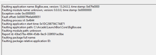 faeran Posted September 19 Author Posted September 19 19 minutes ago, drtechnolust said: Arcade Neon Deluxe Theme 1st boot Crash - Background Music is on bigbox logs2025-09-19 12:04:27 PM FIRST CHANCE EXCEPTION: ImageSourceConverter cannot convert from System.String. at System.ComponentModel.TypeConverter.GetConvertFromException(Object value) 2025-09-19 12:04:27 PM FIRST CHANCE EXCEPTION: ImageSourceConverter cannot convert from System.String. at System.ComponentModel.TypeConverter.GetConvertFromException(Object value) at System.ComponentModel.TypeConverter.ConvertFrom(ITypeDescriptorContext context, CultureInfo culture, Object value) at System.Windows.Media.ImageSourceConverter.ConvertFrom(ITypeDescriptorContext context, CultureInfo culture, Object value) 2025-09-19 12:04:27 PM FIRST CHANCE EXCEPTION: ImageSourceConverter cannot convert from System.String. at MS.Internal.Data.DefaultValueConverter.ConvertHelper(Object o, Type destinationType, DependencyObject targetElement, CultureInfo culture, Boolean isForward) 2025-09-19 12:04:27 PM FIRST CHANCE EXCEPTION: ImageSourceConverter cannot convert from System.String. at System.ComponentModel.TypeConverter.GetConvertFromException(Object value) 2025-09-19 12:04:27 PM FIRST CHANCE EXCEPTION: ImageSourceConverter cannot convert from System.String. at System.ComponentModel.TypeConverter.GetConvertFromException(Object value) at System.ComponentModel.TypeConverter.ConvertFrom(ITypeDescriptorContext context, CultureInfo culture, Object value) at System.Windows.Media.ImageSourceConverter.ConvertFrom(ITypeDescriptorContext context, CultureInfo culture, Object value) 2025-09-19 12:04:27 PM FIRST CHANCE EXCEPTION: ImageSourceConverter cannot convert from System.String. at MS.Internal.Data.DefaultValueConverter.ConvertHelper(Object o, Type destinationType, DependencyObject targetElement, CultureInfo culture, Boolean isForward) 2025-09-19 12:04:28 PM Attract Mode stopped 2025-09-19 12:04:28 PM FIRST CHANCE EXCEPTION: ImageSourceConverter cannot convert from System.String. at System.ComponentModel.TypeConverter.GetConvertFromException(Object value) 2025-09-19 12:04:28 PM FIRST CHANCE EXCEPTION: ImageSourceConverter cannot convert from System.String. at System.ComponentModel.TypeConverter.GetConvertFromException(Object value) at System.ComponentModel.TypeConverter.ConvertFrom(ITypeDescriptorContext context, CultureInfo culture, Object value) at System.Windows.Media.ImageSourceConverter.ConvertFrom(ITypeDescriptorContext context, CultureInfo culture, Object value) 2025-09-19 12:04:28 PM FIRST CHANCE EXCEPTION: ImageSourceConverter cannot convert from System.String. at MS.Internal.Data.DefaultValueConverter.ConvertHelper(Object o, Type destinationType, DependencyObject targetElement, CultureInfo culture, Boolean isForward) 2025-09-19 12:04:28 PM Attract Mode stopped 2025-09-19 12:04:28 PM FIRST CHANCE EXCEPTION: ImageSourceConverter cannot convert from System.String. at System.ComponentModel.TypeConverter.GetConvertFromException(Object value) 2025-09-19 12:04:28 PM FIRST CHANCE EXCEPTION: ImageSourceConverter cannot convert from System.String. at System.ComponentModel.TypeConverter.GetConvertFromException(Object value) at System.ComponentModel.TypeConverter.ConvertFrom(ITypeDescriptorContext context, CultureInfo culture, Object value) at System.Windows.Media.ImageSourceConverter.ConvertFrom(ITypeDescriptorContext context, CultureInfo culture, Object value) 2025-09-19 12:04:28 PM FIRST CHANCE EXCEPTION: ImageSourceConverter cannot convert from System.String. at MS.Internal.Data.DefaultValueConverter.ConvertHelper(Object o, Type destinationType, DependencyObject targetElement, CultureInfo culture, Boolean isForward) 2025-09-19 12:04:28 PM FIRST CHANCE EXCEPTION: ImageSourceConverter cannot convert from System.String. at System.ComponentModel.TypeConverter.GetConvertFromException(Object value) 2025-09-19 12:04:28 PM FIRST CHANCE EXCEPTION: ImageSourceConverter cannot convert from System.String. at System.ComponentModel.TypeConverter.GetConvertFromException(Object value) at System.ComponentModel.TypeConverter.ConvertFrom(ITypeDescriptorContext context, CultureInfo culture, Object value) at System.Windows.Media.ImageSourceConverter.ConvertFrom(ITypeDescriptorContext context, CultureInfo culture, Object value) 2025-09-19 12:04:28 PM FIRST CHANCE EXCEPTION: ImageSourceConverter cannot convert from System.String. at MS.Internal.Data.DefaultValueConverter.ConvertHelper(Object o, Type destinationType, DependencyObject targetElement, CultureInfo culture, Boolean isForward) 2025-09-19 12:04:28 PM FIRST CHANCE EXCEPTION: ImageSourceConverter cannot convert from System.String. at System.ComponentModel.TypeConverter.GetConvertFromException(Object value) 2025-09-19 12:04:28 PM FIRST CHANCE EXCEPTION: ImageSourceConverter cannot convert from System.String. at System.ComponentModel.TypeConverter.GetConvertFromException(Object value) at System.ComponentModel.TypeConverter.ConvertFrom(ITypeDescriptorContext context, CultureInfo culture, Object value) at System.Windows.Media.ImageSourceConverter.ConvertFrom(ITypeDescriptorContext context, CultureInfo culture, Object value) 2025-09-19 12:04:28 PM FIRST CHANCE EXCEPTION: ImageSourceConverter cannot convert from System.String. at MS.Internal.Data.DefaultValueConverter.ConvertHelper(Object o, Type destinationType, DependencyObject targetElement, CultureInfo culture, Boolean isForward) 2025-09-19 12:04:28 PM FIRST CHANCE EXCEPTION: Object reference not set to an instance of an object. at COMMUNITY_Theme_Creator_Library.FileFallbackWithSearchConverter.Convert(Object[] values, Type targetType, Object parameter, CultureInfo culture) 2025-09-19 12:04:29 PM [FFME Log]: Direct Command 'Close' not accepted. Open media before closing or changing media. 2025-09-19 12:04:29 PM [FFME Log]: SYNC AUDIO: SKIP OK | Initial: 44 ms. Current: -10 ms. Requested: 50 ms. 2025-09-19 12:04:30 PM Attract Mode stopped 2025-09-19 12:04:30 PM FIRST CHANCE EXC