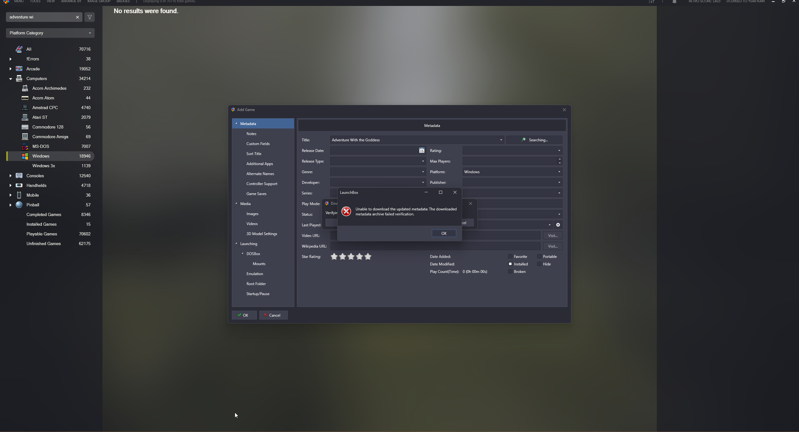 Try force downloading the update.   Tools < Download < Force Update Games Database Metadata...