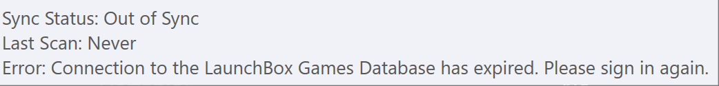 Taneruit Posted Saturday at 04:16 PM Posted Saturday at 04:16 PM (edited) I type my credentials into Launchbox, click on Sign In, but whenever I do that the attached error message pops up. It doesn't matter how many times I sign in, its still there. I can log in just fine in my Browser, if that's any help. Edited Saturday at 04:17 PM by Taneruit Quote