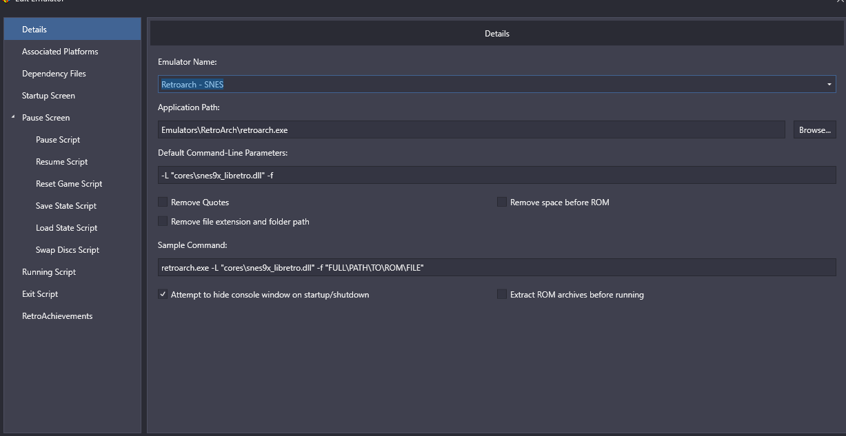 unfw Posted yesterday at 05:20 AM Posted yesterday at 05:20 AM To combine different ports of the same game into one game to manage game details easier, I decided to create parallel configurations of the Retroarch configuration. This is because I was having an issue where, if I combine an SNES and Sega Genesis game, the parent game platform would be used for the additional app run. This change fixed that for me, however now when I run the game, the retroachivements configuration doesn't work and I cannot login in RetroArch when the game starts even if I configure the username/password in RetroArch's base application. Now I have three questions: 1) Is there a better way of combining ports to not have "duplicate" games showing? 2) Is there a better way of organizing the platform information to pick the right retroarch core for each platform in the additional apps of a game? 3) Is there a way to manage the retroachivements login information to either use the retroarch configured username and password with the copied emulator doesn't "support" retroachivements? Thank you Configured Emulators Additional App configuration: SNES Emulator configuration: Quote